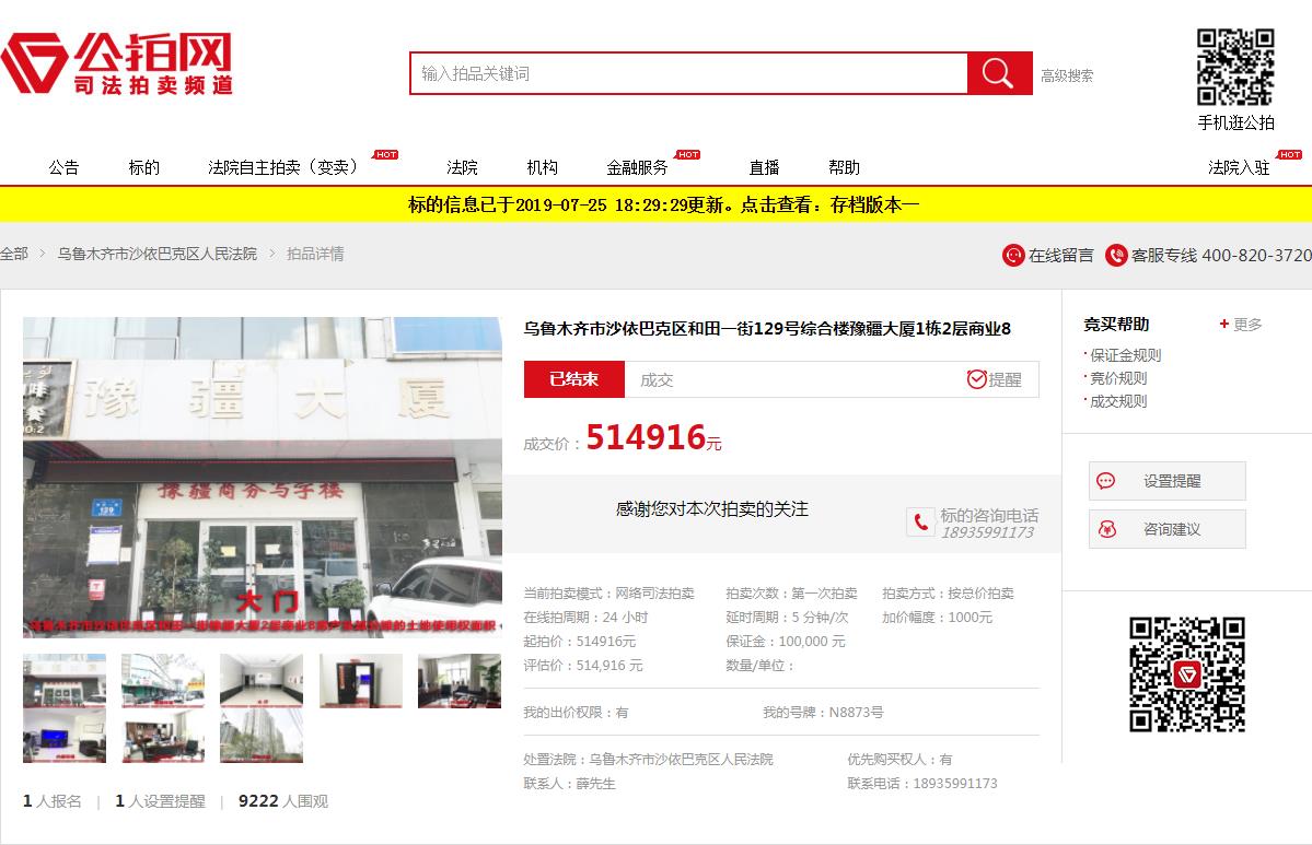 【成交】乌鲁木齐市沙依巴克区和田一街129号综合楼豫疆大厦1栋2层商业8