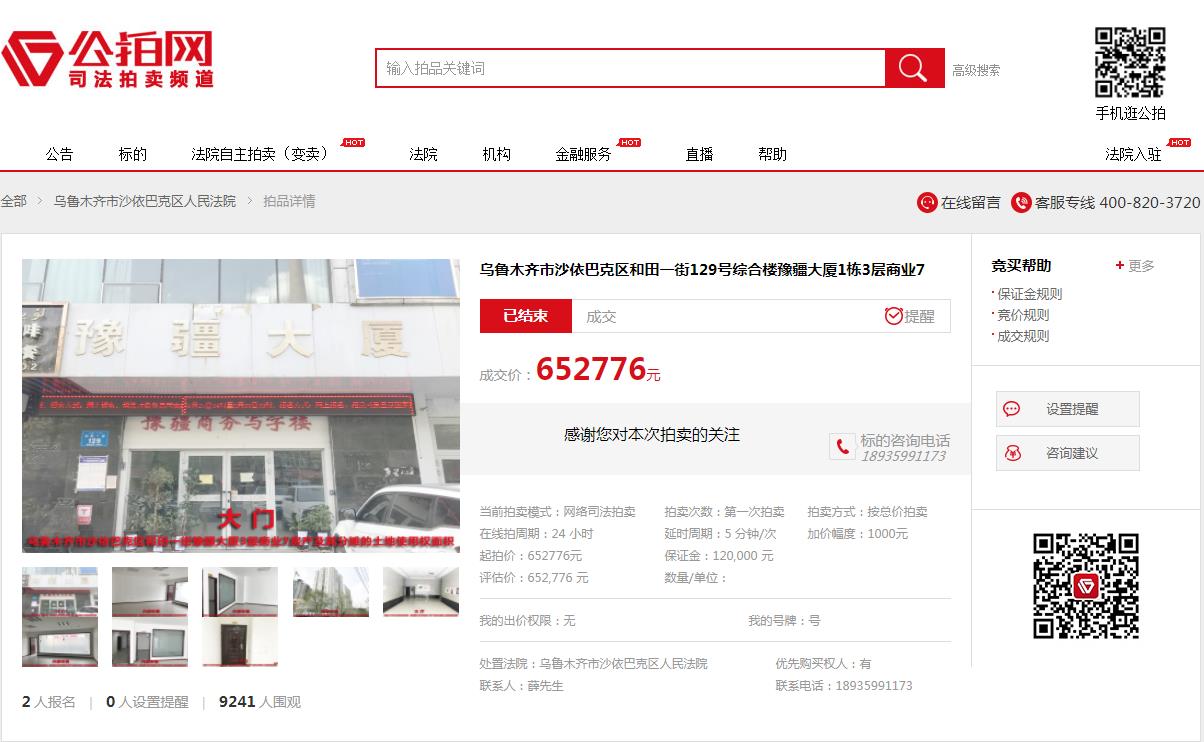 【成交】乌鲁木齐市沙依巴克区和田一街129号综合楼豫疆大厦1栋3层商业7