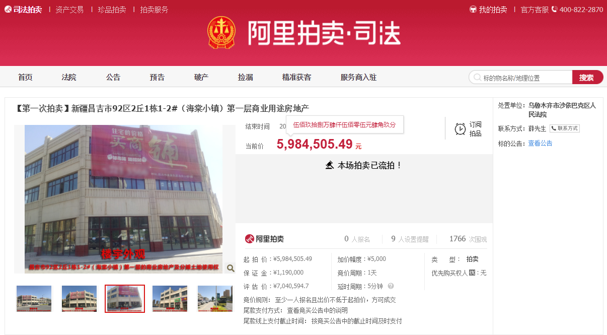 【一拍流拍】新疆昌吉市92区2丘1栋1-2#(海棠小镇)第一层商业用途房地产