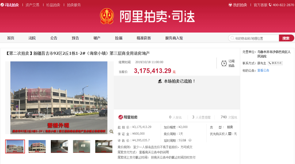 【二拍流拍】新疆昌吉市92区2丘1栋1-2#(海棠小镇)第三层商业用途房地产