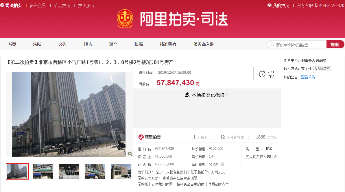 【二拍流拍】北京市西城区小马厂路1号院1、2、3、8号楼2号楼3层01号房产